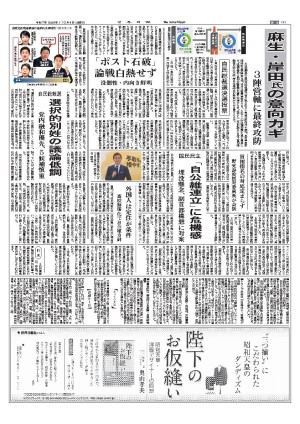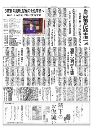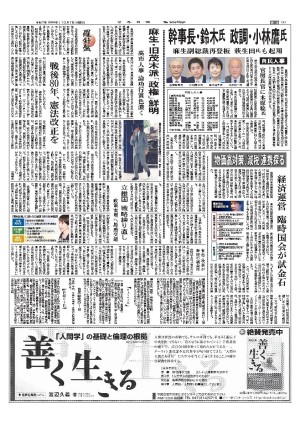 【連載】連立拡大にらむ 自民新総裁 ■中■