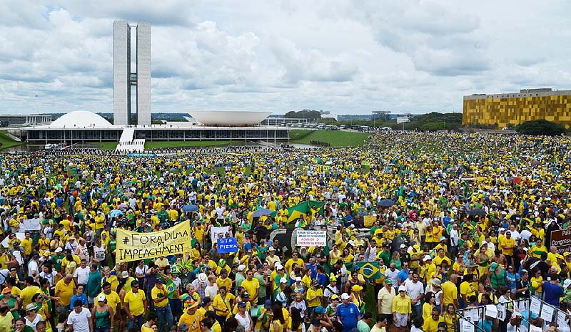このような状況の中、今月15日にフェイスブックなどのSNSを通じて、政治汚職の追放とルセフ大統領の退陣を呼び掛ける声に、ブラジル全土の主要都市において200万人以上が呼応、ブラジル中の主要都市の目抜き通りを埋め尽くした。